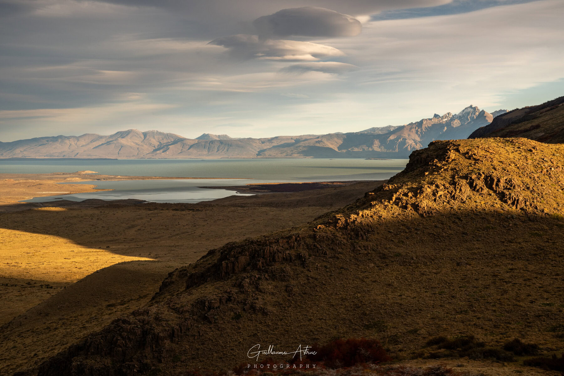 Ce genre de paysage, c’est exactement ce que j’espérais trouver en venant en Patagonie. Reliefs ondulés, lacs infinis, nuages denses, le tout magnifié par une lumière sensationnelle. C’est pourtant sur un spot sans prétention que j’ai assisté à ce spectacle, lors d’une courte randonnée jusqu’au mirador Las Agulias près du village d’El Chalten.
