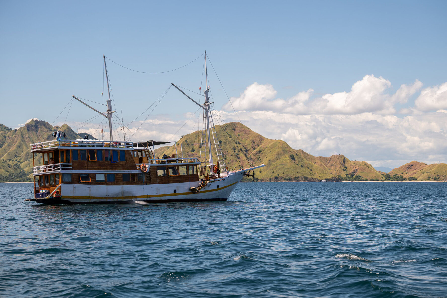 Ces embarcations typiques, encore largement utilisées dans l’archipel indonésien, permettent d’explorer des paysages uniques mêlant collines arides, mer cristalline et horizons infinis.