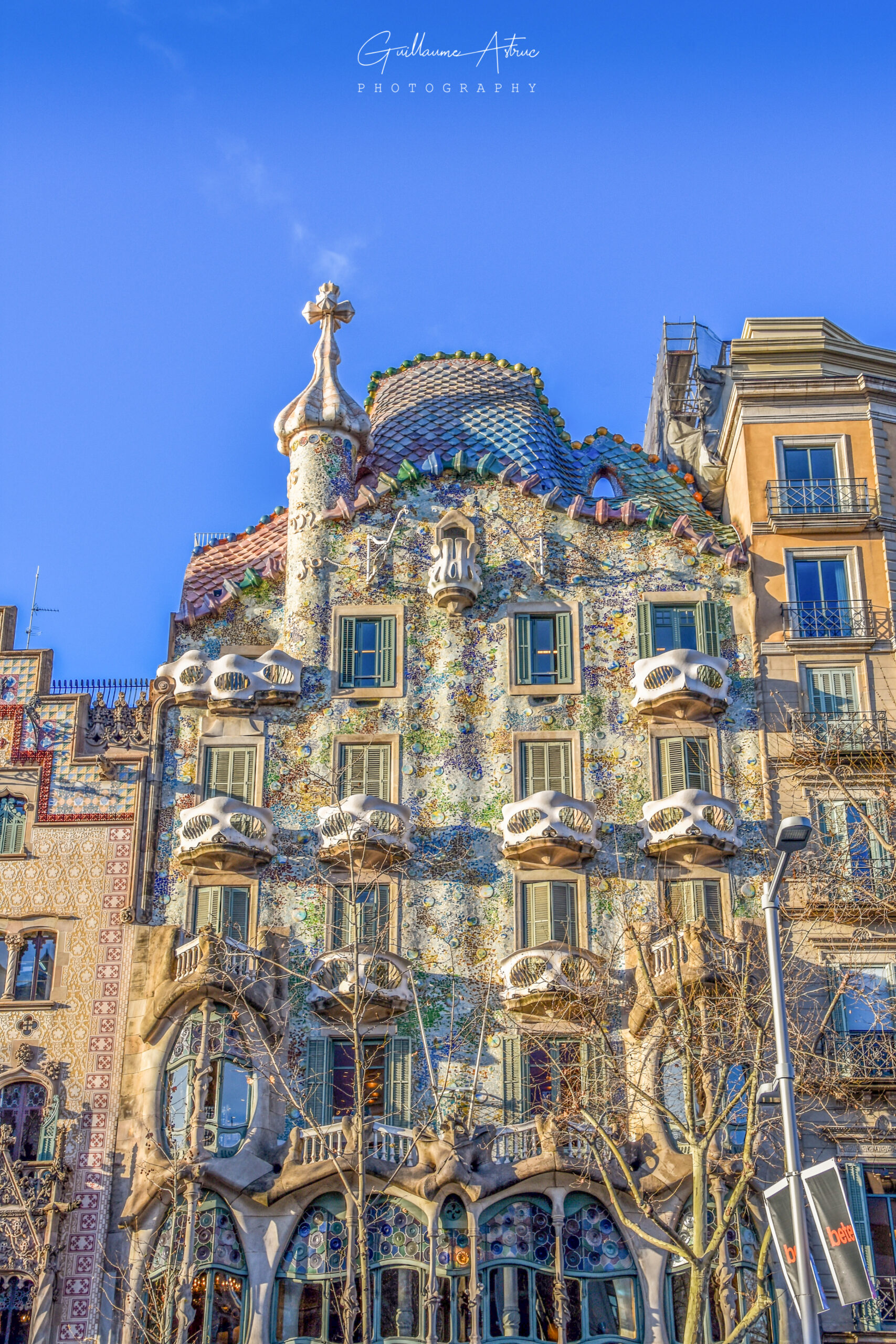 La Casa Batlló constitue à elle seule un univers fabuleux mélangeant génie architectural, ode à la nature et invitation au rêve. Aucun détail de la façade n’a été laissé au hasard, elle évoque la nature et plus précisément le monde marin. Les seules lignes droites sont celles du plancher, sinon tout est ondulé comme les vagues de la mer. Les murs sont peints de sorte à ressembler à des écailles de poissons et les vitraux ornés de bulles.