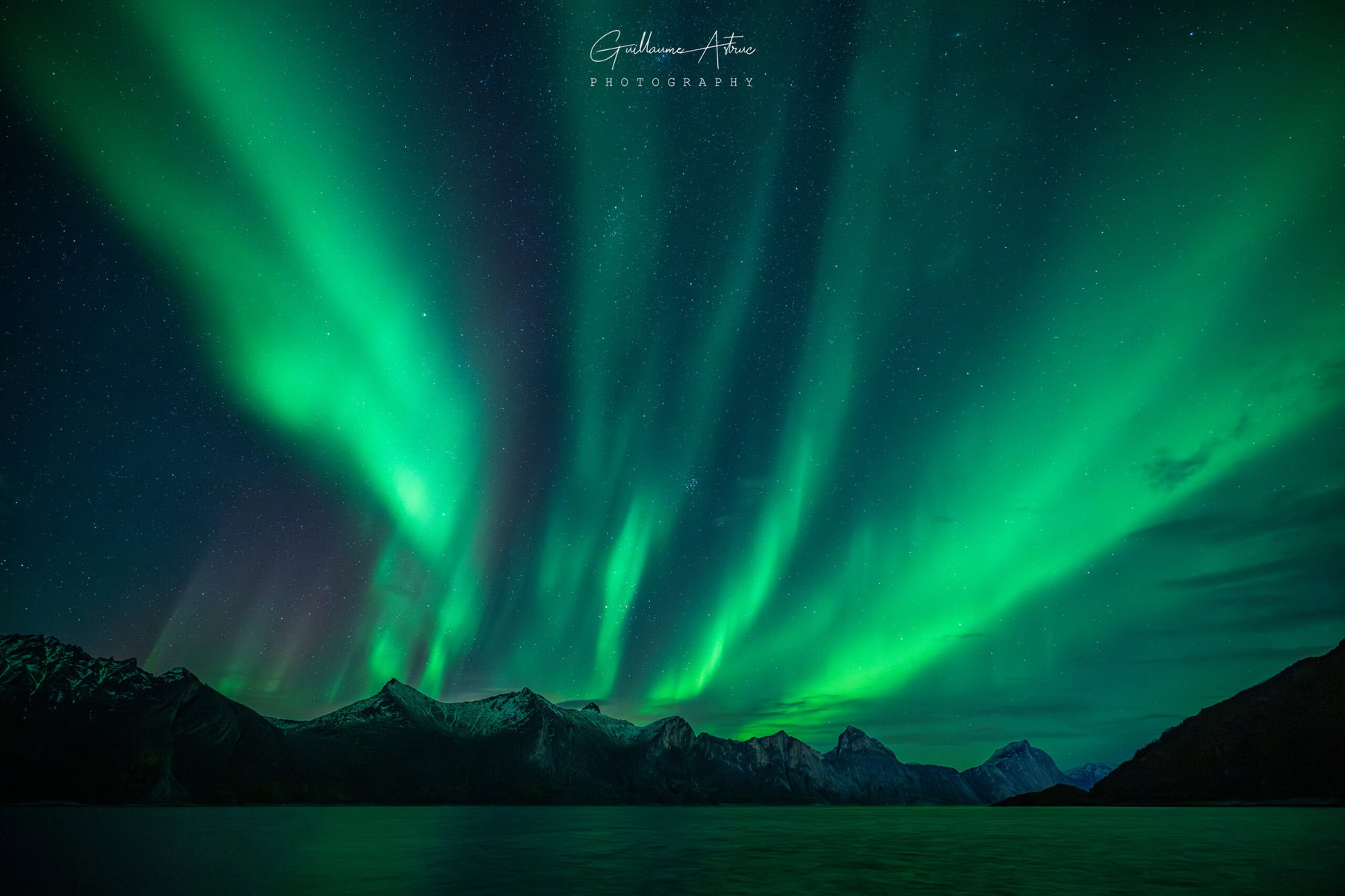 Étiquettes astrophotographie, atmosphère, Aurore boréale, beauté naturelle, Cercle Polaire, ciel étoilé, ciel vert, énergie solaire, exploration, Horizon, lumière du Nord, mer du Nord, Montagnes, mystère, nature sauvage, Norvege, paysages arctiques, photographie de nuit, Scandinavie, Senja, Voyage